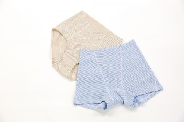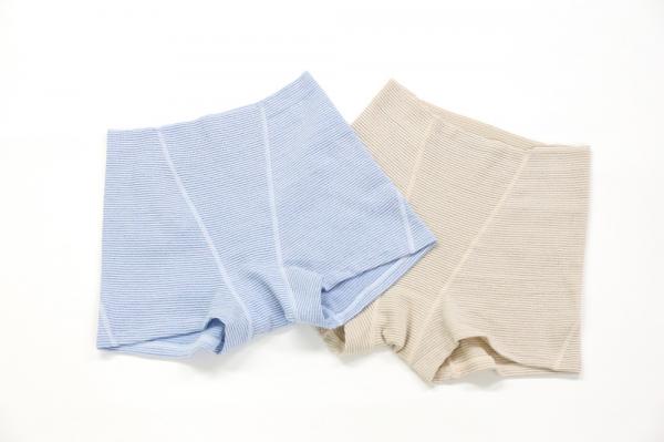 今回登場するレディース包帯ウエストゴムなしショーツの新色は、包帯のようにふんわり柔らかく肌なじみの良いベージュと爽やかなサックスの2色。レギュラータイプとボクサータイプの2種類で、シーンやお好みによって選ぶことができます。