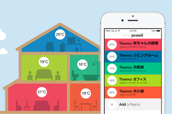 1つのアプリに複数のPeanutを登録でき(※1)、設定可能な温度範囲もマイナス20度~プラス60度までと幅広いので、様々な場所の温度をまとめて管理することができます。さらにIFTTTにも対応しており、ハブ用のデバイスを使って「設定した温度を超えた場合に自動でエアコンをオン・オフさせる」といった連携も可能です(※2)。