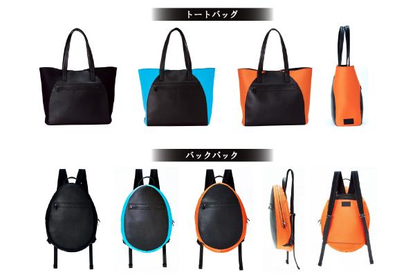 スキューバやサーフィンで使用されるウェットスーツ用素材のネオプレンは、体温を守る保温性と身体を守る程のクッション性があります。したがってネオプレン素材でバッグを作ることにより、バッグそのものがクッションの役割となり、緩衝材を入れずにモバイル機器を運ぶことができます。表面は良質な牛革を張り合わせ、機能とファッションを融合させました。バッグパックのポケットは11インチのパソコンが入るサイズになっています。