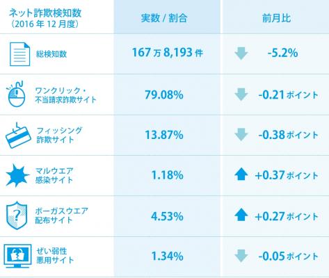BBソフトサービス(BBSS)の「Internet SagiWallTM(インターネットサギウォール)」で検知したデータを基にした、2016年12月度のインターネット詐欺リポートです。