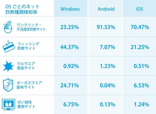 OSごとのネット詐欺種類検知率