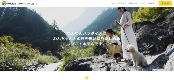 「わんわんパラダイス」とは、愛犬と宿泊できるリゾートホテルのパイオニアとして15年間で約83万人、約160犬種が利用している、山・海の人気リゾート地7ヶ所の国内最大規模チェーンホテルです。