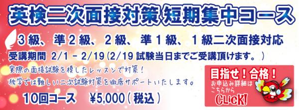 2月1日より試験当日の2月19日まで二次試験(3級~1級まで)面接対策の短期集中講座を開講いたします