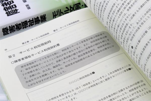 新日本法規出版株式会社(所在地:愛知県名古屋市中区栄1丁目23番20号、代表取締役:服部昭三 http://www.sn-hoki.co.jp/) は、障害者福祉事業を運営していくにあたって必要とされる文書のモデル例(サービス利用関係(「開始前」「開始時」「利用者関係」)、事業運営関係(「日常業務」「リスクマネジメント」「防災」「人事評価・人材育成」「行事・会議」)を掲げ、その作成上のポイントについて解説した『障害者福祉事業 モデル文例・書式集』4,428円(税込)を1月25日(水)に発行しました。