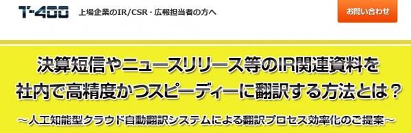 <IR/CSR向け高精度テーラーメイド自動翻訳サービス「T-4OO(IR/CSR)」の特徴>