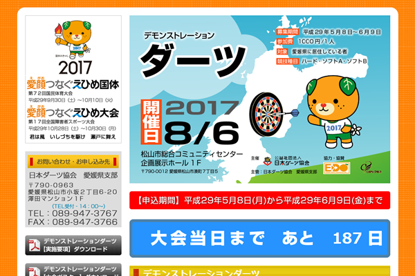 ※大会へのお問い合せ・お申し込み先は「日本ダーツ協会 愛媛県支部」上記サイト内に記載されています。