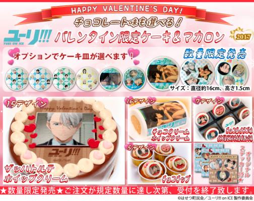 「プリロール」を運営する株式会社栄通(本社:東京都八王子市)は、人気アニメ『ユーリ!!! on ICE』のバレンタイン限定デザインのプリントケーキ&マカロンを2017年1月10日(火)より予約受付開始いたしました。
