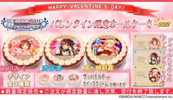 「プリロール」を運営する株式会社栄通(本社:東京都八王子市)は、『アイドルマスター シンデレラガールズ』バレンタイン限定デザインのプリントケーキを2017年1月24日(火)より予約受付開始いたしました。