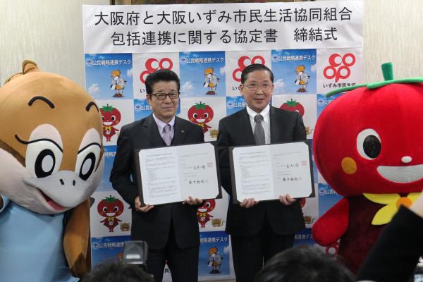 2月8日(水)、大阪府(松井一郎知事)と大阪いずみ市民生協(藤井克裕理事長)は、包括連携協定を締結しました。