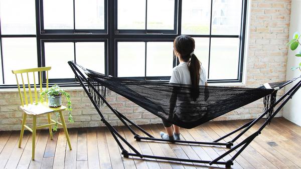 そんな、ハンモックに揺られながらくつろぐ憧れのひと時を気軽に楽しんでいただける一台です。