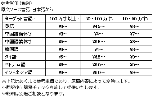 ■ 内容:発注量に応じて翻訳単価を逓減。