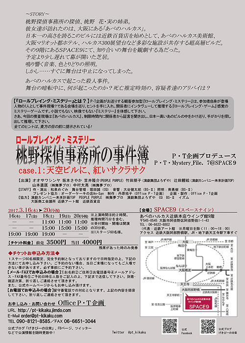 桃野探偵事務所の探偵、桃野 花・実の姉弟。彼女達が訪れたのは、大阪にある「あべのハルカス」。その9階にあるSPACE9にて、知り合いの舞台を観劇する為だった。