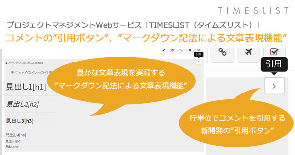 ▼コメントの“引用ボタン”、“マークダウン記法による文章表現機能”の特徴