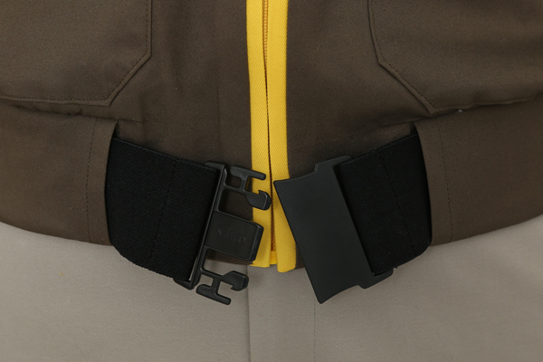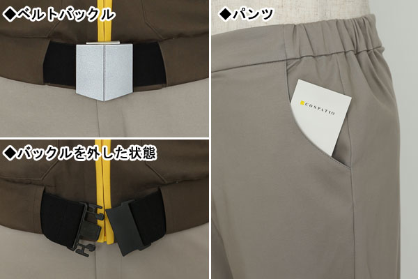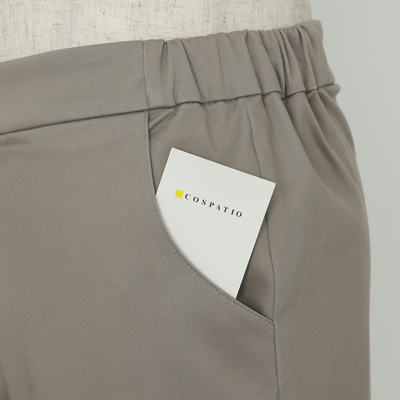 パンツは設定に合わせ若干ハイウエストにし、サイドにはゴムを入れサイズに汎用性を持たせています。