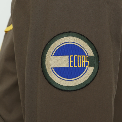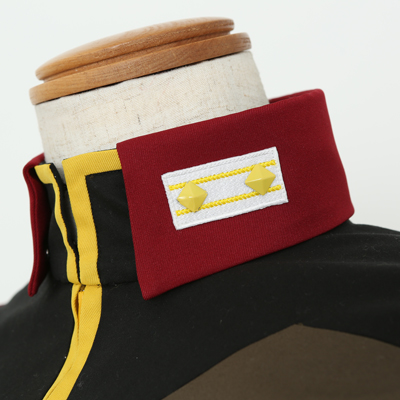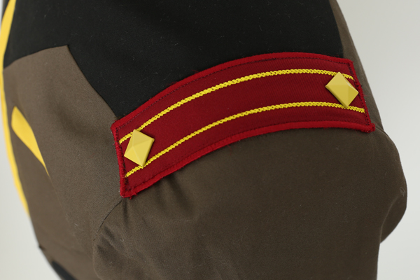 威厳漂う襟章・肩章は、立体的なピラミッド型のパーツを打ち付け、黄色のラインは刺繍で表現。