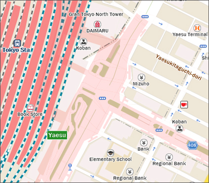 地図も上記5言語に対応。また地図仕様も訪日外国人旅行客にとってストレスなく使えるよう、特別にデザインしています。