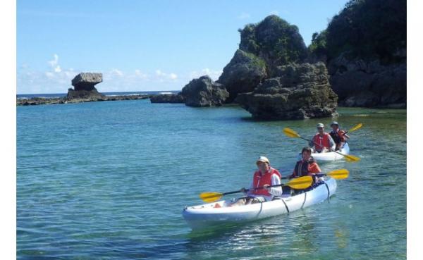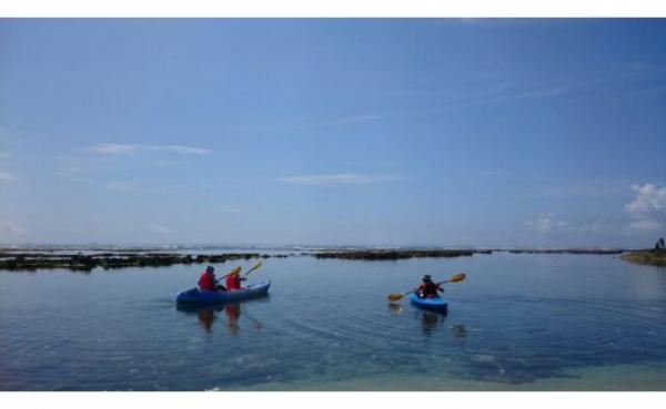 沖縄県八重瀬町玻名城の郷(はなしろのさと)ビーチでのシーカヤック体験。
