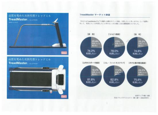 企業のブランドコンサルティングを手掛ける日本ブランドアソシエイツ(株)(東京都港区、豊隅優CEO、http://www.brandassociates.jp)は、世界初の薄型特許技術採用の世界一薄いトレッドミルを製作する(株)大武・ルート工業(岩手県一ノ関市、太田義武、http://www.ohtake-root.co.jp http://www.tm.ohtake-root.co.jp )の 戦略商品を共同開発した。東京ビッグサイトで2月23日(木)~25日(土)に開催される「東京マラソンEXPO2017」(入場料無料)で戦略商品として“TreadMaster”畳バージョンも新たにデビューし、今後、世界ブランド確立を目指し全国、海外販売していく。