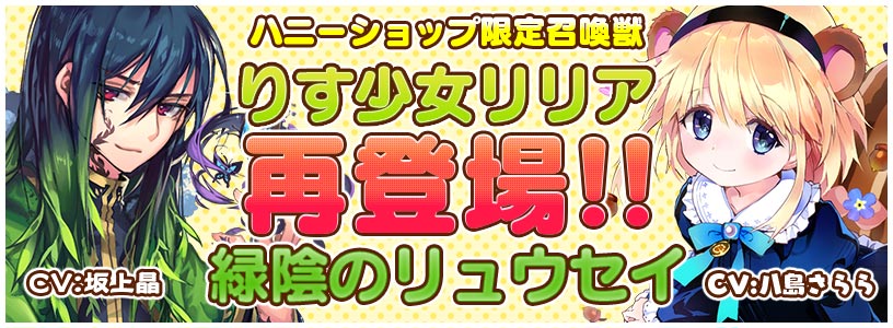 ハニーショップに「りす少女リリア」と「緑陰のリュウセイ」が再登場!