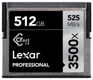 ・512GBモデルのLexar Professional 3500x CFast 2.0カードは、最大525MB/秒の読み取り転送速度と最大445MB/秒の書き込み速度*1を実現