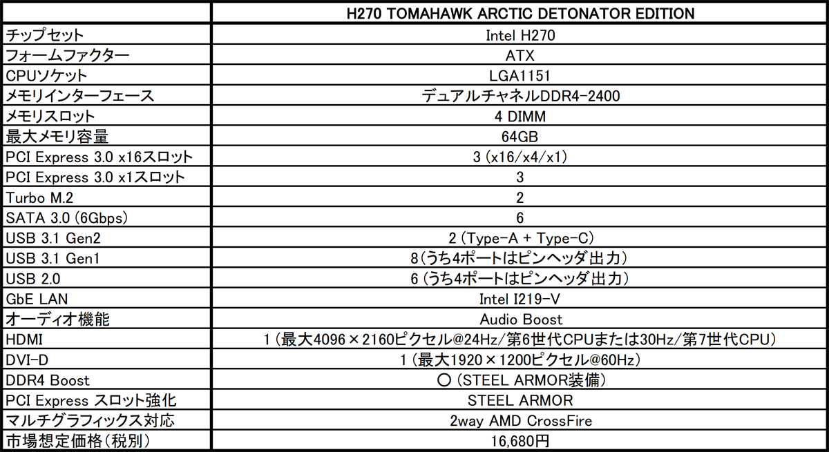 https://jp.msi.com/Motherboard/H270-TOMAHAWK-ARCTIC-DETONATOR-EDITION