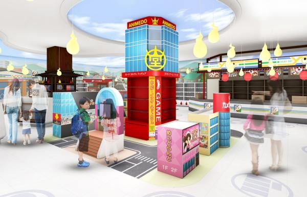 関西初登場となるヨロズマート店内には、作中に登場するイナホとUSAピョンが探偵事務所を開く街「アオバハラ」にある「アニメ堂」がシンボルとして再現され、各所に潜む妖怪たちと出会える仕掛けや、突然“鬼時間”が巻き起こる演出など、「妖怪ウォッチ」ならではの世界観を体験していただきながら、ここでしか買えない豊富なオリジナル商品をお求めいただけるユニークなキャラクターショップです。商品はヨロズマート限定商品をメインに、等身大ぬいぐるみから小さなお菓子まで約600アイテムをご用意します。