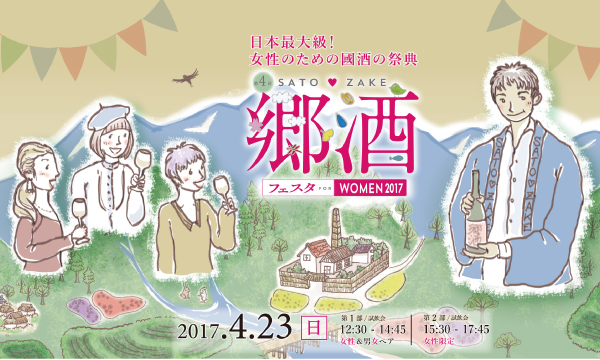 日本地酒協同組合と郷酒フェスタ実行委員会は『第4回 郷酒フェスタ for WOMEN 2017』を、リーガロイヤルホテルグループ都市センターホテル(東京都千代田区)にて4月23日(日)に開催いたします。「女性のための國酒の祭典」をコンセプトにした女性向けの日本酒イベントとして、来場者1,000名(1部:女性・男女ペア、2部:女性限定)に、全国から26蔵以上、100種類を越える日本酒、焼酎、リキュール等を蔵人が振舞います。