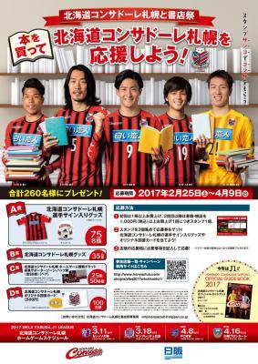 2月25日(土)開始の北海道書店祭では、2017年シーズンにJ1へ昇格するプロサッカークラブ「北海道コンサドーレ札幌」と、また東海3県書店祭では、2017年3月に開園80周年を迎える東山動植物園とそれぞれ連携し、書店店頭を盛り上げてまいります。