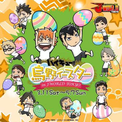 株式会社ナムコが運営する“ジャンプ”作品の世界観で遊べるテーマパーク「J-WORLD TOKYO」(東京・池袋)では、イースターをモチーフにした『ハイキュー!!』のイベント「ハイキュー!! 烏野イースター in J-WORLD TOKYO」を、2017年3月11日(土)から5月7日(日)まで開催します。