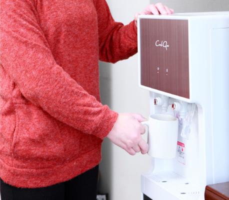 いつでも好きな時に冷水と温水が使えるウォーターサーバーはここ数年で家庭にも普及し、さまざまなメーカーの製品が出ています。日本で一般的なサーバーは、上部に水の入ったボトルを設置して使うタイプですが、当社が取り扱う「クール・クー」は、ボトルが入らない水道につなげて水をろ過する自動給水型ウォーターサーバーです。