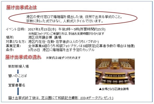 港区の受付窓口で婚姻届を提出した後、役所で出来る挙式のこと。