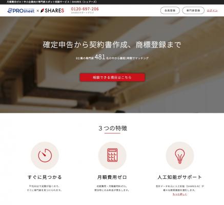今回のキャンペーンは、IT人材マッチングサービス「PROsheet」の会員に対して、税務・法務・労務に関する悩みを8士業の専門家に無料で見積り相談できるWebサービス「SHARES」を2017年3月15日まで利用できるものです。SHARESには8士業(弁護士、弁理士、司法書士、行政書士、税理士、社会保険労務士、公認会計士、中小企業診断士)、合計450名以上の専門家がおり、あらゆる経営相談に対応可能です。