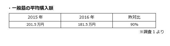◆一般墓の平均購入額、181.5万円、永代供養墓は82.3万円