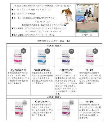 同社は、愛犬・愛猫を家族の一員として愛し、長寿を願う飼い主の皆様に同商品をお届けできるよう、今後も学会やセミナーを通じ、多くの獣医師の方々にその魅力を伝えてまいります。また、当日、十分にお伝え出来なかった内容や、サニメドの取扱いを希望される獣医師の皆様からのお問い合わせをお待ちしております。