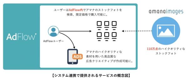 日本国内で最も多くのバナー・LP を制作し、国内の大手広告主や広告代理店、制作プロダクションなど1,000以上の事業者(個人事業主含む)が導入する、制作業務に特化したグループウェア『AdFlow(アドフロー)』を提供する株式会社クリエイターズマッチ(本社:東京都渋谷区、代表取締役:呉京樹 ゴ ケイジュ、以下「クリエイターズマッチ」)は、アマナグループの株式会社アマナイメージズ(本社:東京都品川区、代表取締役社長:新居祐介、以下「アマナイメージズ」)と事業提携し、AdFlowユーザーがアマナイメージズのストックフォトを特別価格で購入できるサービスを2017年4月3日より提供開始することを、お知らせいたします。