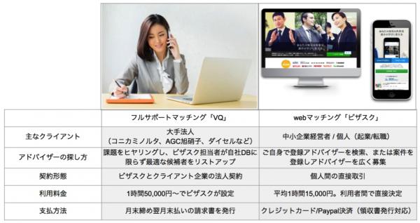 ■webマッチング「ビザスク」には誰もが参加でき、案件を登録しアドバイザーを広く募集したり、登録情報から適切なアドバイザーをキーワード検索したりすることができます