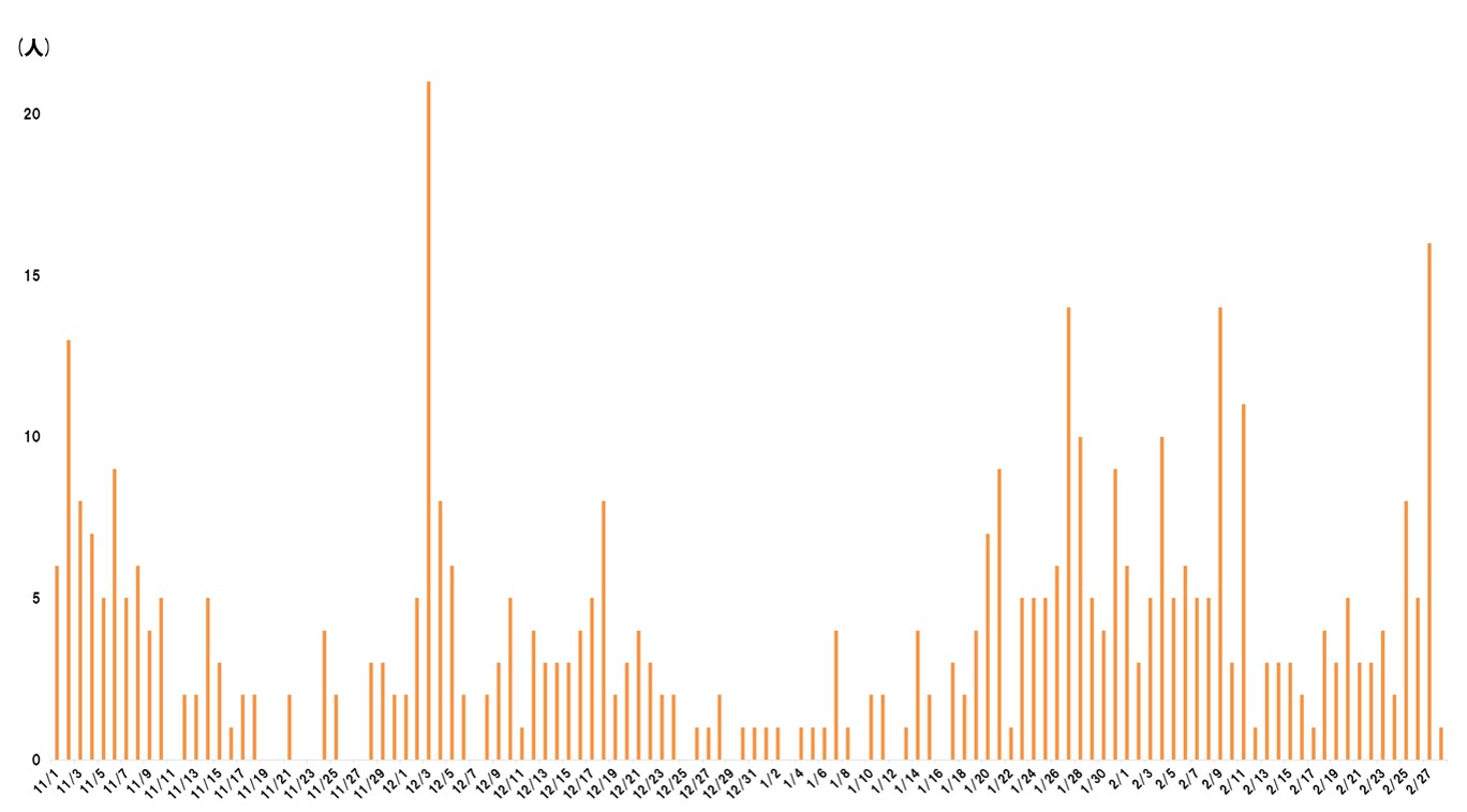 ■会員数の日別推移(2016年11月1日~2017年2月28日)