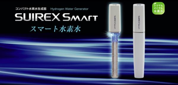 新開発のコンパクト水素水生成器「SUIREX Smart」は、充電式でハンディサイズなので、どこでも持運びができ、ボタンを押すだけで簡単に水素水をお楽しみいただけます。