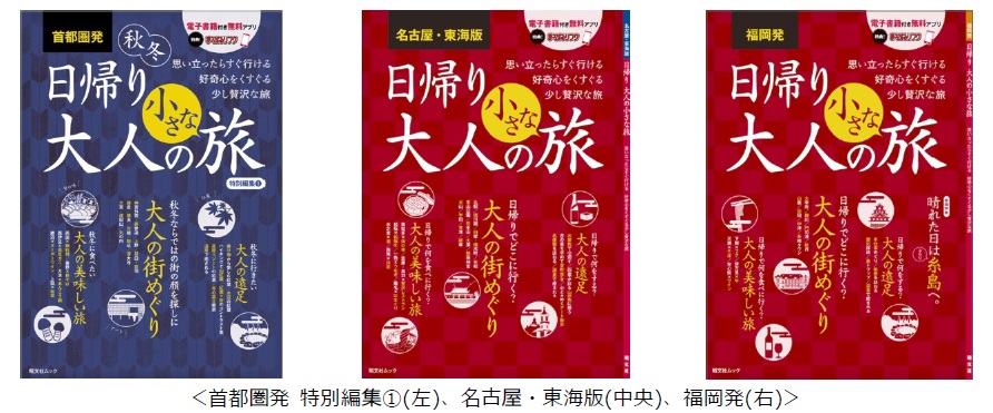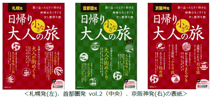 株式会社昭文社(本社:千代田区麹町、代表取締役社長 黒田茂夫、東証コード:9475)は、思い立ったらすぐ行ける、大人のおでかけを提案するガイドブック『日帰り 大人の小さな旅』シリーズの続刊として、『札幌発 日帰り 大人の小さな旅』を3月15日より、『首都圏発 日帰り 大人の小さな旅 vol.2』と『京阪神発 日帰り 大人の小さな旅』を3月16日より、それぞれの地域の書店等で発売いたします。