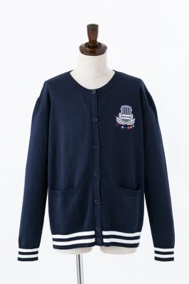 ネイビーのボディにホワイトのラインがアクセントになったカーディガンです。