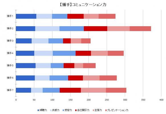 l バッテリー(投手&捕手)が受信力(傾聴力、共感力、受容力)が高く、野手(内野手、外野手)が発信力(自己開示力、主張力、コミュニケーション力)が高い傾向に。