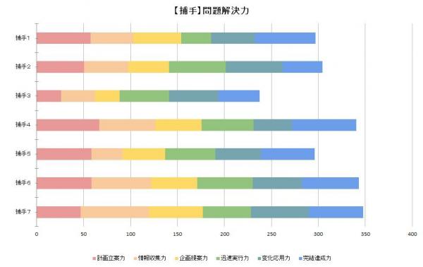 全ポジション(マネージャー含む)に共通する問題解決力として一番高いスコアがでたのが「完結達成力」。目標達成=「勝利」という1つの目標に向けて、どのポジションもチーム一丸となって行動していることが能力にも現れた結果となりました。