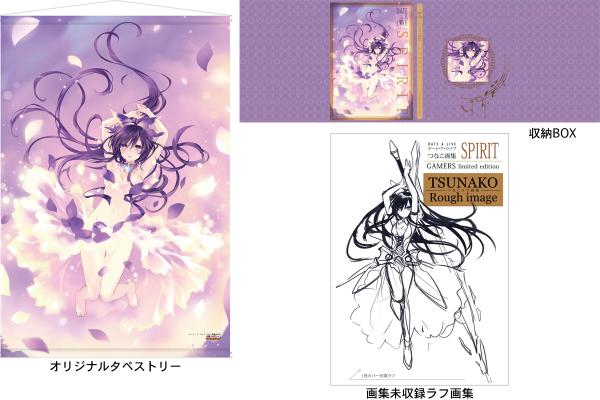 『デート・ア・ライブ つなこ画集 SPIRIT』は画集を収納できる【収納BOX】と画集未収録のラフイラストを収録した【画集未収録ラフ画集】がセットになったゲーマーズ限定版をご用意しました。さらに、ゲーマーズ限定版の仕様に加えて【オリジナルタペストリー】がプラスでついてくるゲーマーズ【超】限定版も登場!