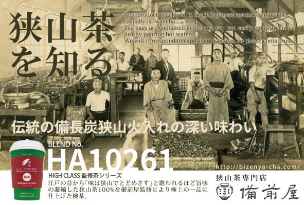 備前屋は、明治初年の創業以来、地元の特産品である狭山茶を専門取り扱っており、直営の茶園にて貴重になりつつある「野木園」の手摘み茶の栽培、生産に取り組み狭山茶の安定供給と品質向上に努めています。