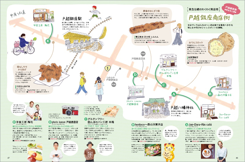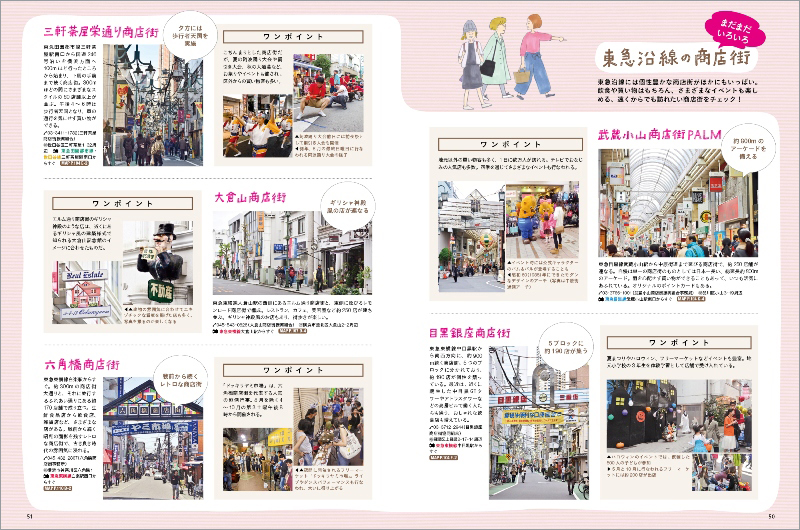 どこか懐かしい、レトロな雰囲気を感じられる商店街さんぽ。おやつを買い食いしたり、お店の人との会話を楽しんだり、イラストマップでわかりやすく案内します。池上線の戸越銀座商店街、東横線のモトスミ商店街(元住吉)をクローズアップするほか、おさんぽが楽しい沿線の他の商店街も掲載しています。