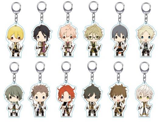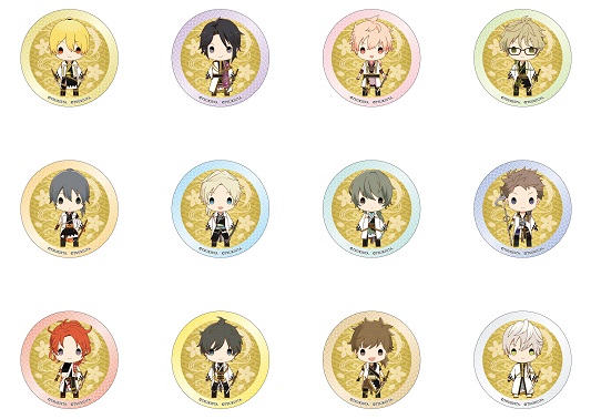 公演衣装を着たかわいいちびキャラのトレーディング缶バッジ、アクリルキーホルダー、クリアファイルが「Six Gravity」、「Procellarum」の全メンバーの絵柄で登場!「ツキウタ。」、「ツキステ。」両方のファンにオススメできるグッズです。