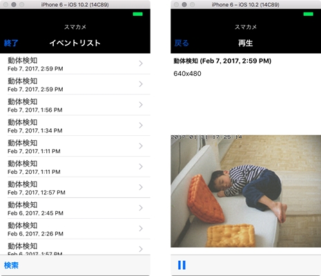 カメラのmicroSDカード内に保存されたイベント録画の再生も行えます。