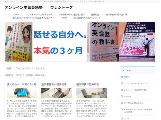 オンライン英会話の活用法を主とした英語学習本を3年間で3冊上梓し、個人や企業向けの英語学習講義の講師を30回以上務める嬉野克也は、2017年2月下旬にオンライン英会話を徹底活用する塾「ウレシトーク」(Webサイト http://ureshi-talk.com )を開講いたしました。