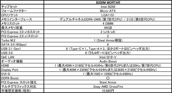 2017年3月16日-Micro-Star International Co., Ltd. 台湾・新北市- マザーボードの設計で世界をリードするMicro-Star International(MSI)は、第7世代Intel CoreプロセッサーをサポートするIntel B250チップセット搭載ゲーミングマザーボードの新製品として、PCゲーム入門環境構築に最適なMicro-ATXマザーボードの「B250M MORTAR」を追加し、3月18日より販売を開始いたします。市場想定価格は、10,980円です。