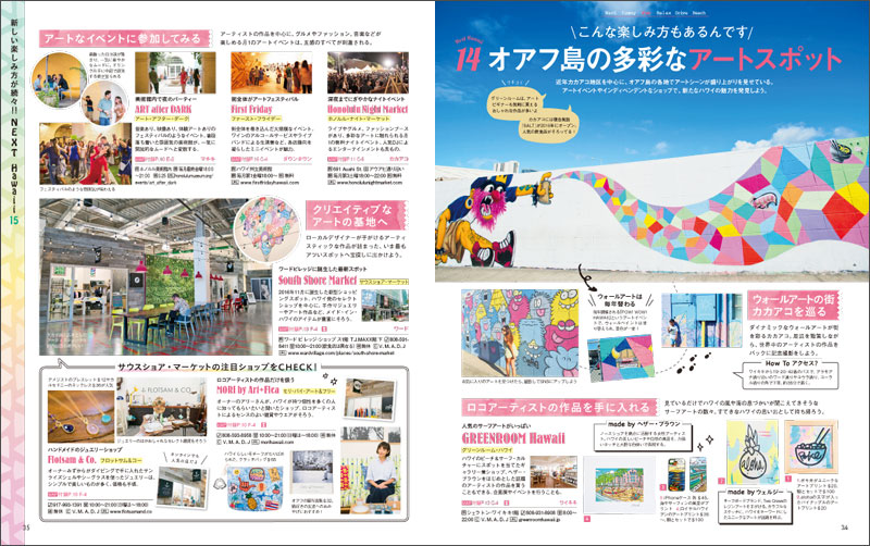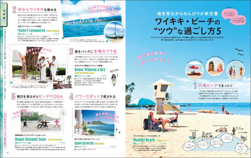 今オススメのハワイの新しい楽しみ方を15に絞って巻頭特集でご紹介しています。SNSで「いいね!」間違いなしの新絶景スポット、オープンサンドやチアシードを取り入れたニュースタイルの朝食、地元のトレンドに触れるアートスポットなど、旬の話題が詰まっています。